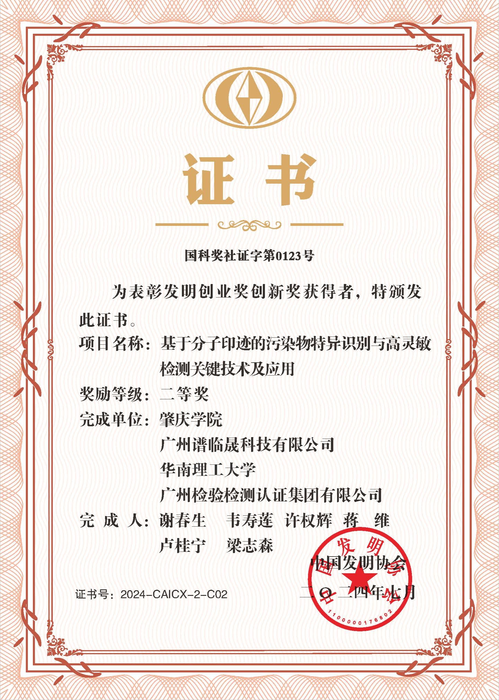 近日,中国发明协会颁发了2024年度发明创业奖证书,william威廉中文官网作为第一完成单位、谢春生教授作为第一完成人的“基于分子印迹的污染物特异识别与高灵敏检测关键技术及应用”成果获得发明创业奖创新奖二等奖!