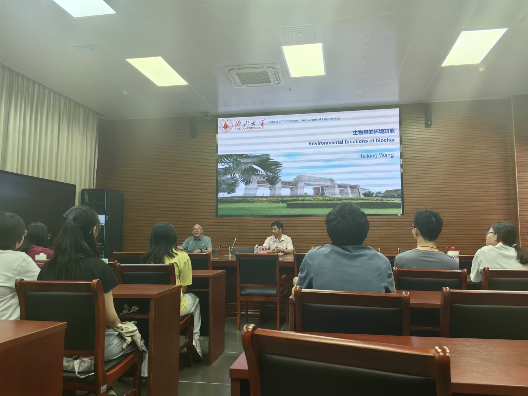 2024 年 10 月 25 日,佛山大学特聘教授王海龙莅临环境与化学工程学院交流指导,并带来一场精彩的专题报告。王海龙教授作为环境科学与工程学科带头人、博士生导师,曾任新西兰皇家研究院资深科学家,在环境领域有着卓越的成就和深厚的学术造诣。