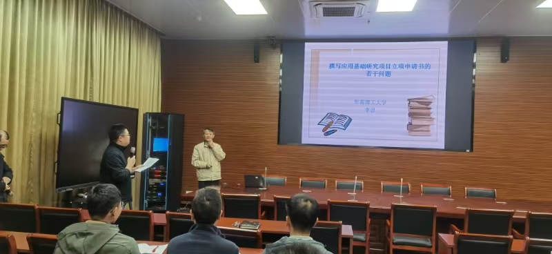 2024 年 12 月 18 日上午 10 点,我院邀请华南理工大学李忠教授为学院老师开展“撰写应用基础研究项目立项申请书的若干问题”的学术讲座,为环化、生科及食药的老师们传递国家自然科学基金申报的前沿动态与宝贵经验,有针对性的为老师们在申报国基过程中遇到的困惑进行答疑。