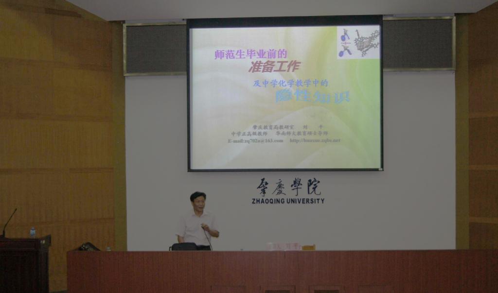 近年来,随着学校新生地逐年矿招,我院学生的人数也逐年递增,师范方向学生的知识素养及就业深受学院领导的高度重视,为了我院师范专业的学生能更好的认识自己专业的就业形势及如何更好的竞争上岗。5月17日晚,一场题为“师范生毕业前的准备工作及中学化学教学中的隐性知识”讲座在校图书馆学术报告厅隆重举行。