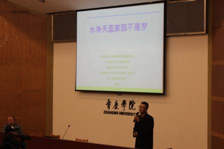 本网讯(记者 张瑜)3月18日,化学化工学院在图书馆学术报告厅举办了了以“水净天蓝家园不是梦”为主题的讲座,学院邀请到中国文化书院岭南分院副秘书长、肇庆师专81级化学班校友吕建博士担任主讲人,出席本次讲座的嘉宾有学院副院长梁巧荣、专任教师及学生代表,共计360人。