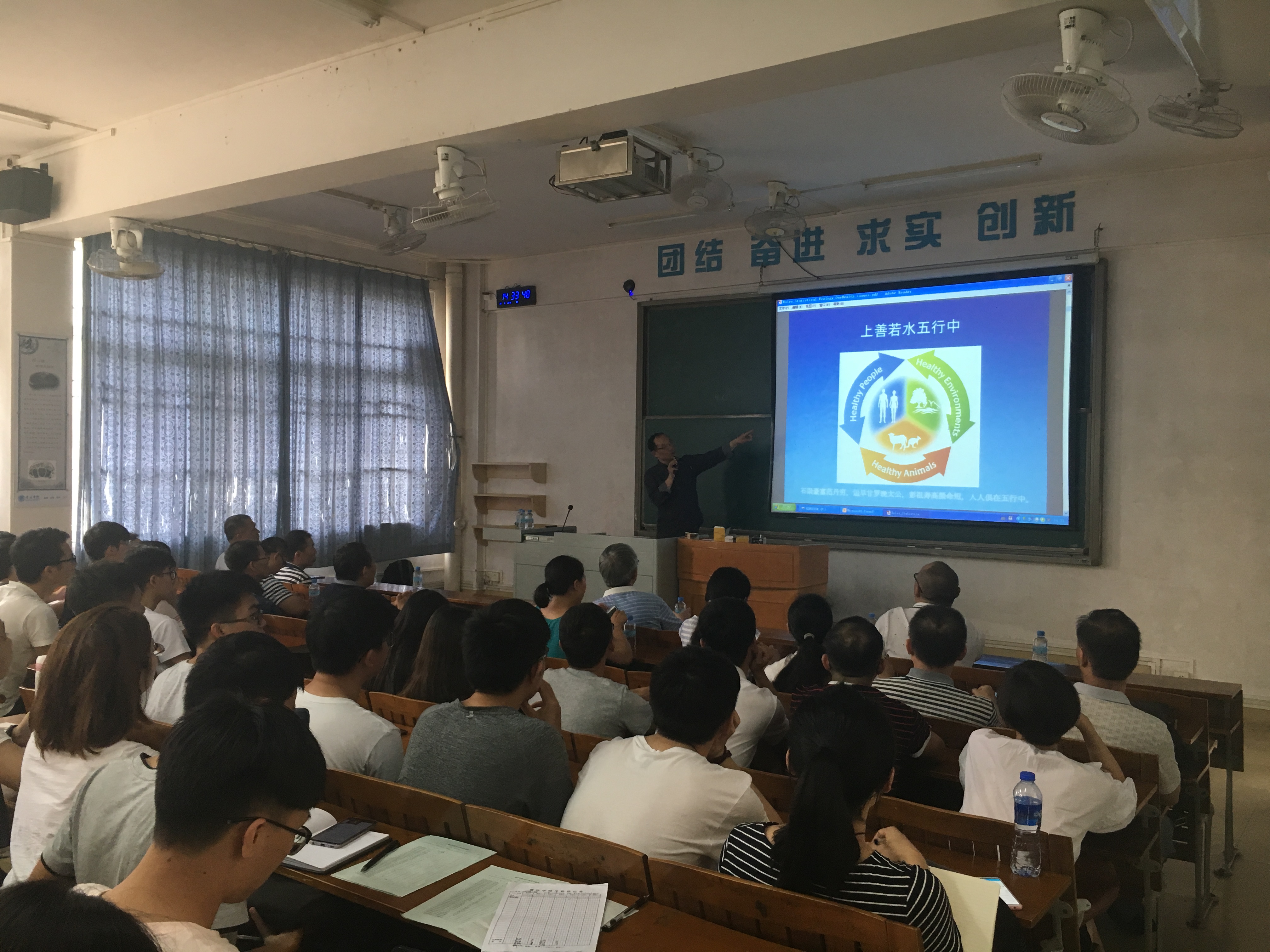 报告中,魏博士从基因组学角度分析了环境与人类疾病之间的关联,通过vGWAS方法用以构建更精确的关联分析模型,以求研究环境、遗传因素对人类遗传病基因的上位性效应。魏博士语言平实,旁征博引,赢得师生阵阵掌声。报告结束后,他又以新西兰畜牧养殖生产对水环境的影响为例,与师生们就生态可持续发展等问题展开热烈讨论。