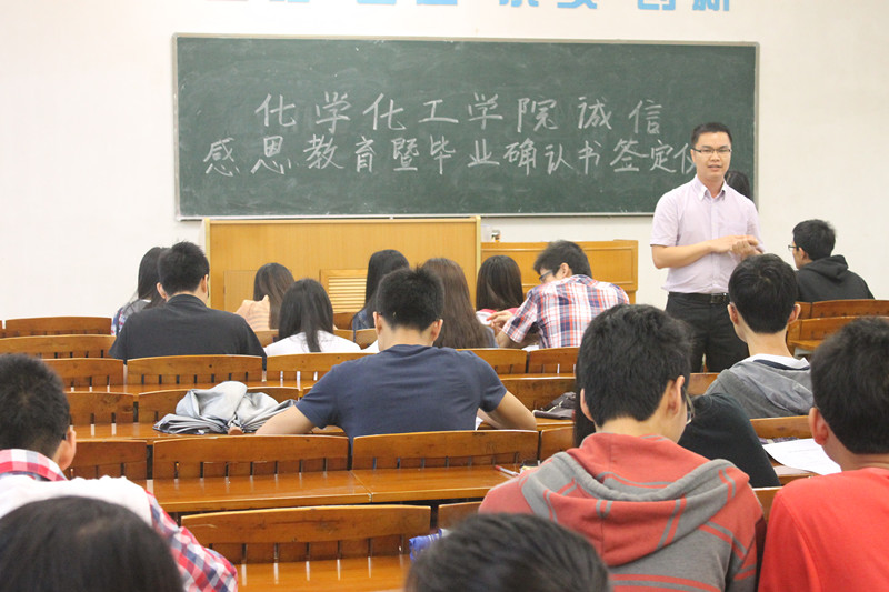 本网讯(化学化工学院 通讯)5月9日中午,化学化工学院诚信感恩教育暨毕业确认书签订仪式在教学楼九栋103室举行,我院负责助学工作的专职辅导员为应届贷款毕业生上了一堂生动感人的诚信感恩教育课。