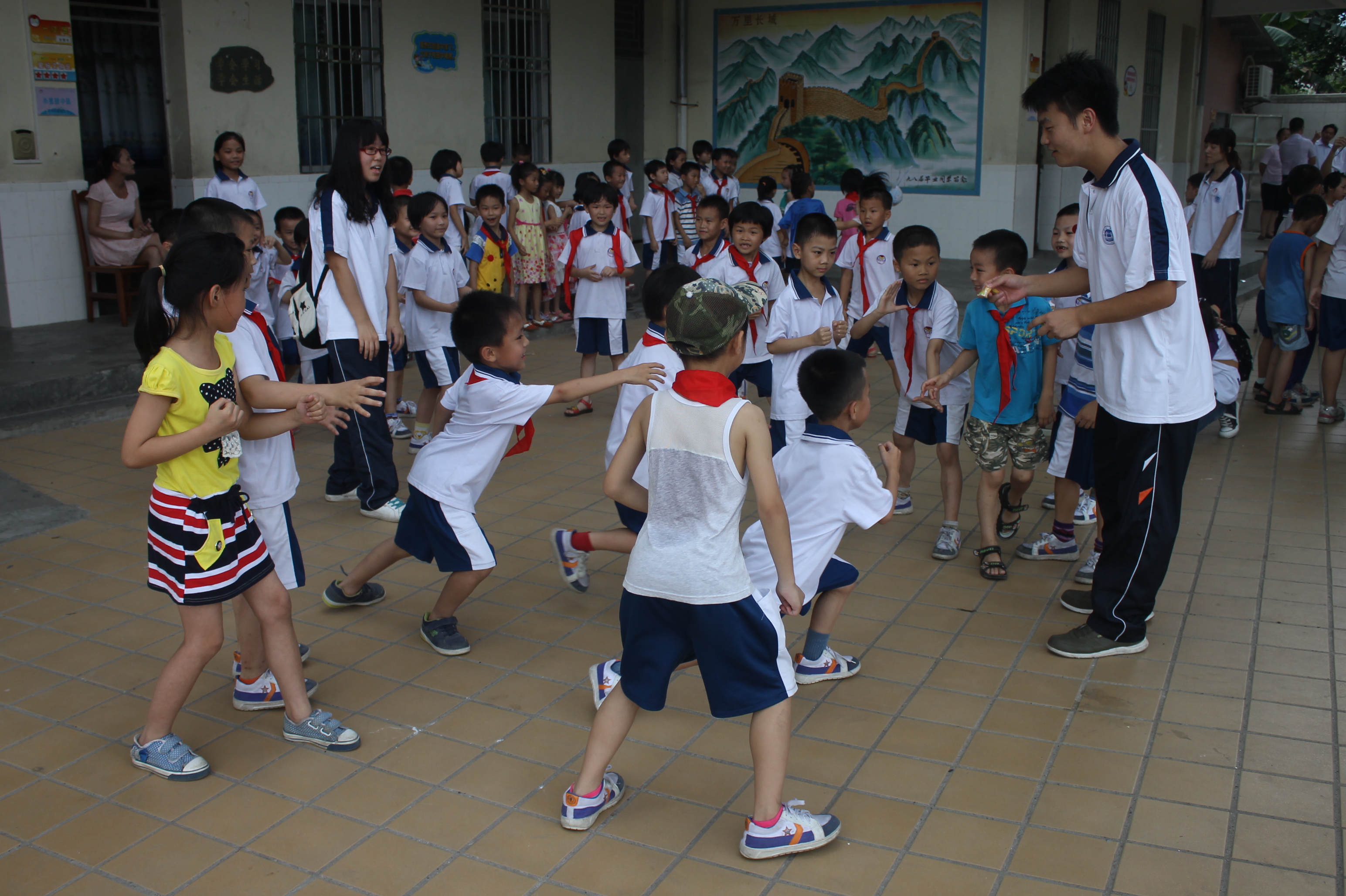 本网讯(记者 何冬娜)5月30日下午,由我院团委主办的以“快乐童心,畅想六一”为主题的六一游园活动在肇庆沙湖小学举行,辅导员李进华老师、我院40多名大学生志愿者与该小学700多名小朋友共度六一儿童节。